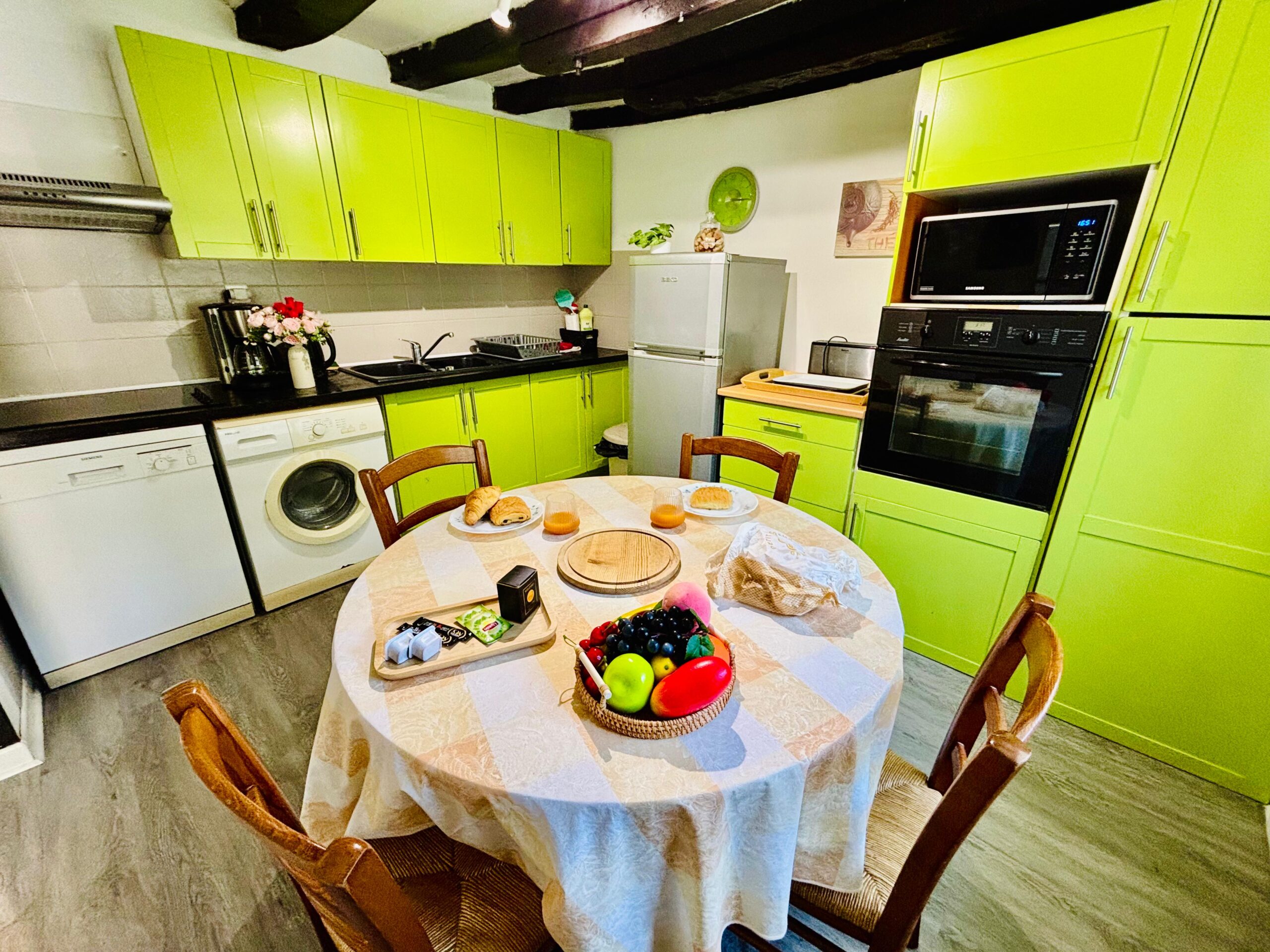Ce très spacieux appartement au 1er étage d’un ancien corps de ferme réhabilité en appartements, d’une surface de 90 m² a une capacité d’accueil de 6 à 8 personnes.